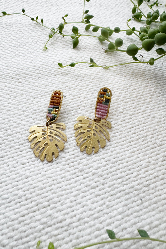 Mini Freya Capsule Studs w/ Monstera Dangle