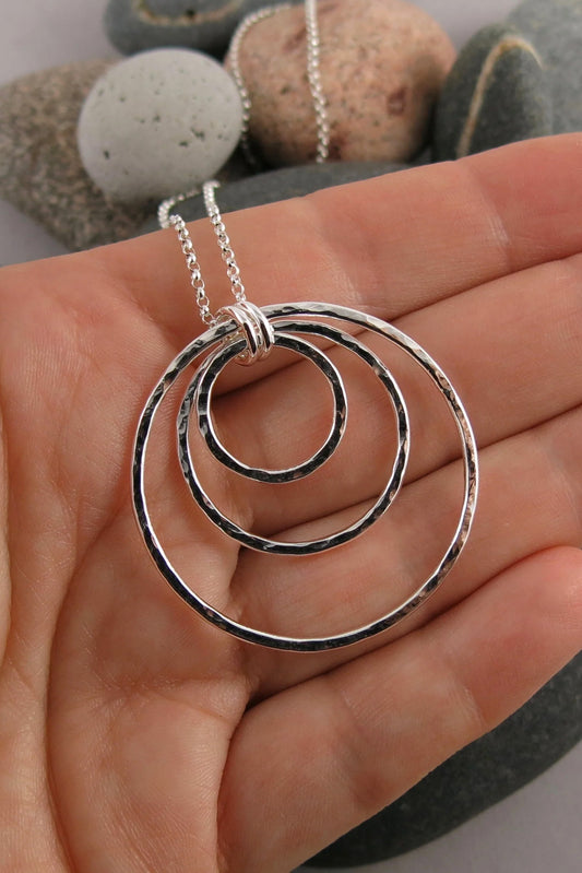 Nesting Trio Circle Necklace • Hammer Textured Sterling Silver with Rolo Chain