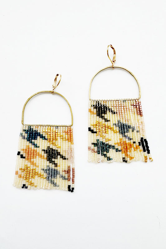 Multicolour/ TransluscentHoundstooth Beaded Fringe Earrings