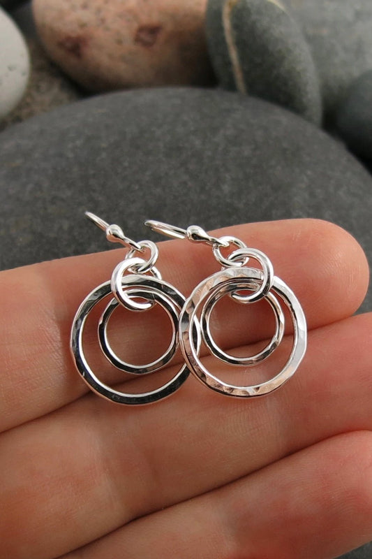 Nesting Duo Circle Earrings • Hammer Textured Sterling Silver