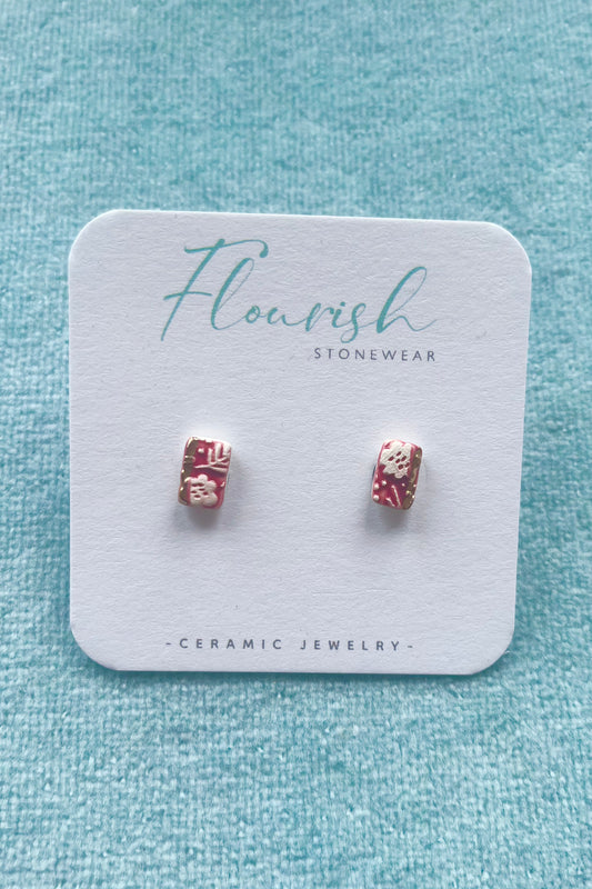 Red/Blue/Pink Houndstooth Beaded Fringe Earrings