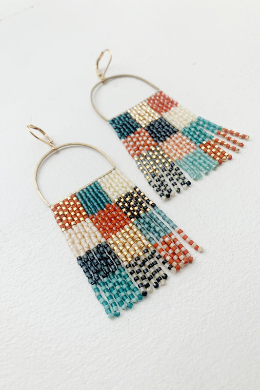 Sold outTeal Rust Check Beaded Fringe