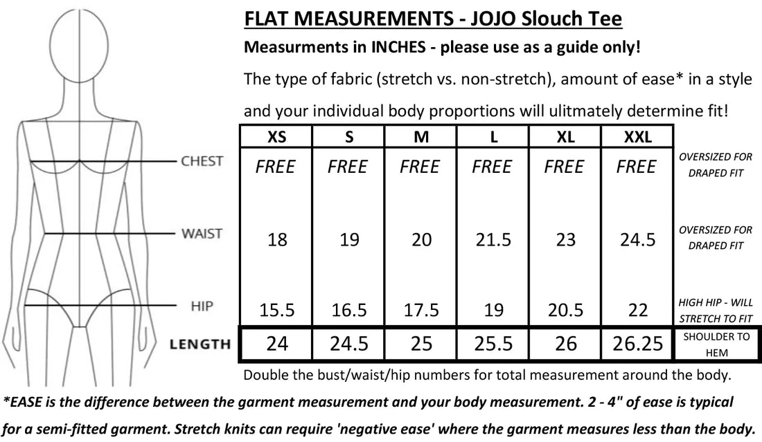 It's baaaack! Mandala's iconic slouch tee has returned for fall/winter 2025. The Jojo features 3/4 sleeves, a round neck, and slouchy fit all in a viscose crepe fabric. It looks great dressed up or down, with pants or a skirt, with scarves and jewellery. Basically, it can handle anything you throw at it! Available in eight colours in sizes XS to XXL.