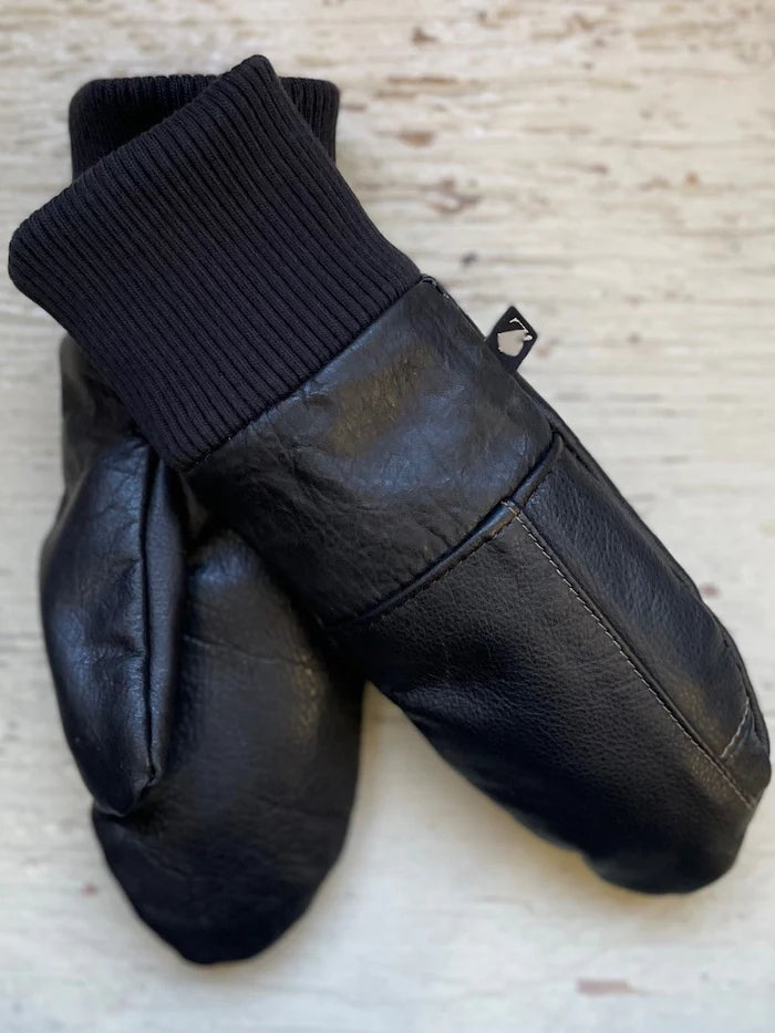 Kazak's beloved Lhasa Mittens are baaaaack! These stylish and cozy mittens are made from recycled leather, with ribbed cuffs. The mittens are lined with super thick fleece to keep your hands really warm. They come a bunch of different colours in sizes S/M or L.
