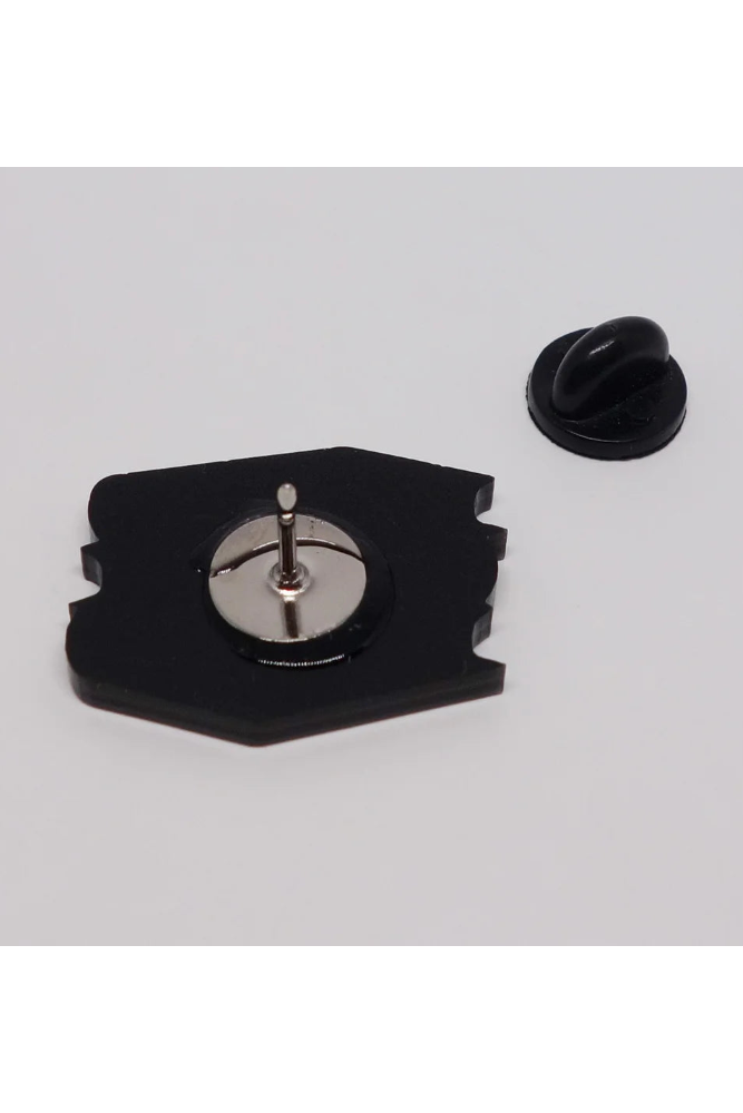 Pin made from recycled black plastic, laser engraved and cut. Filled with white paint. Pairs well with Wednesday Addams accessories.
