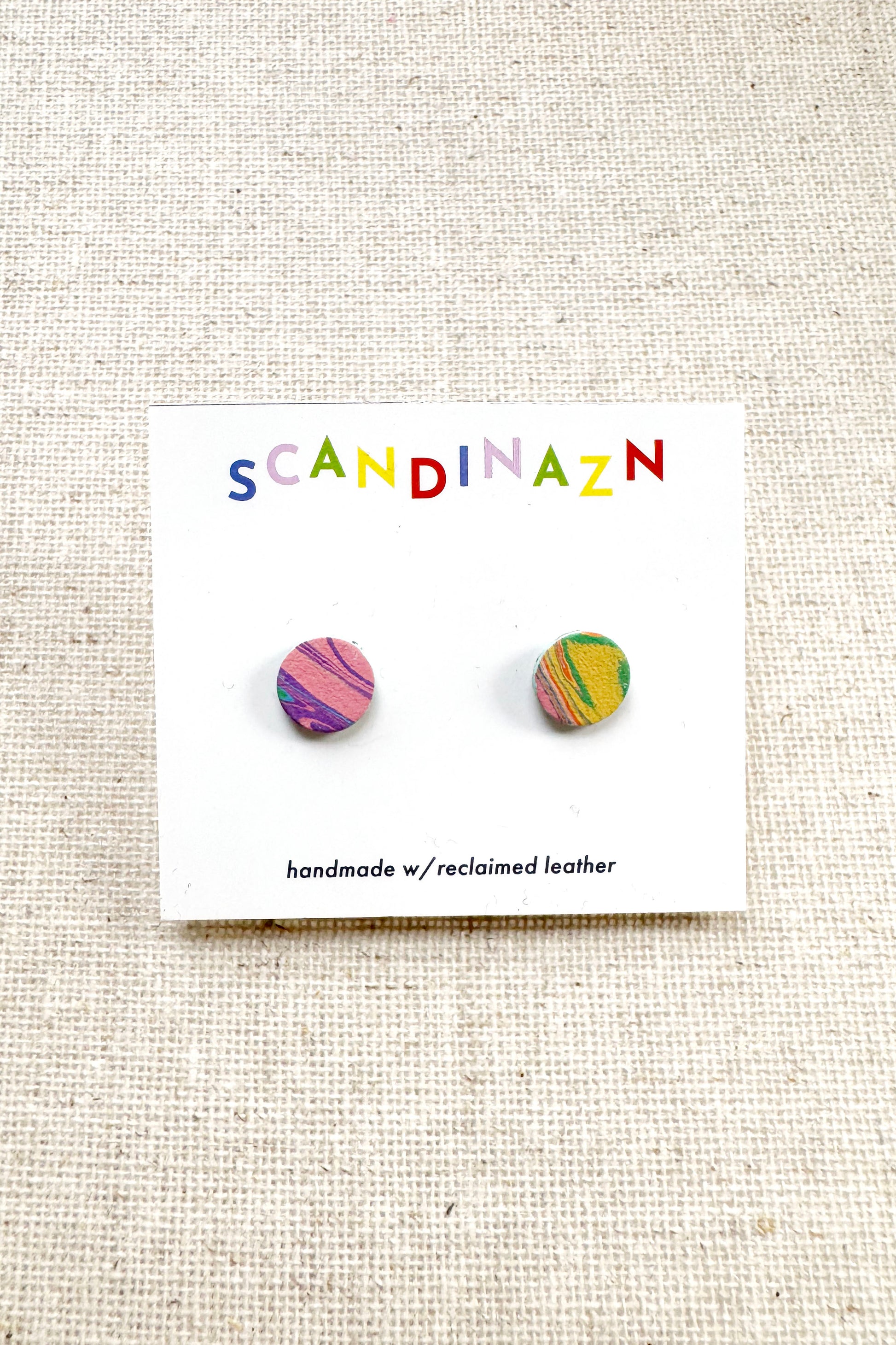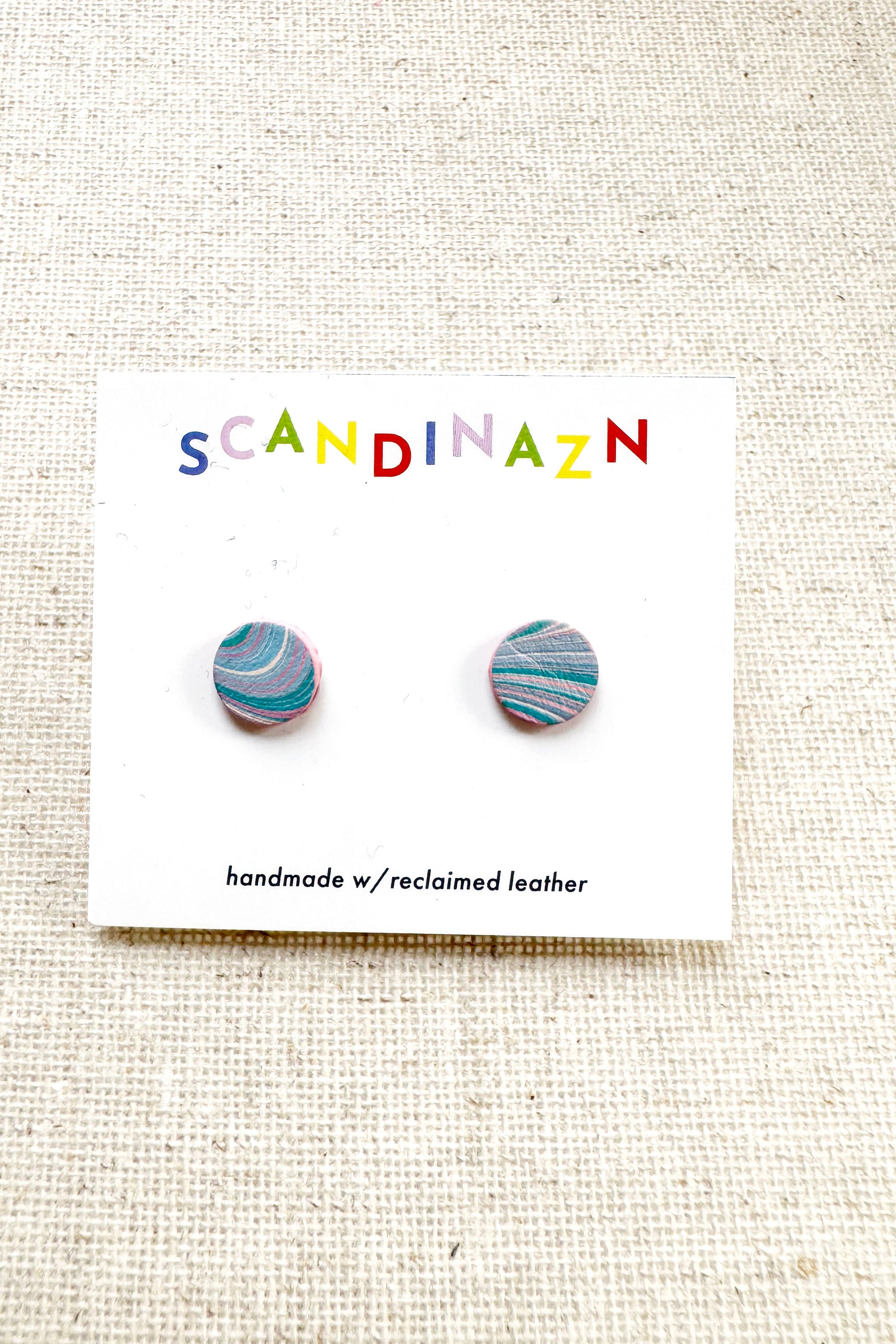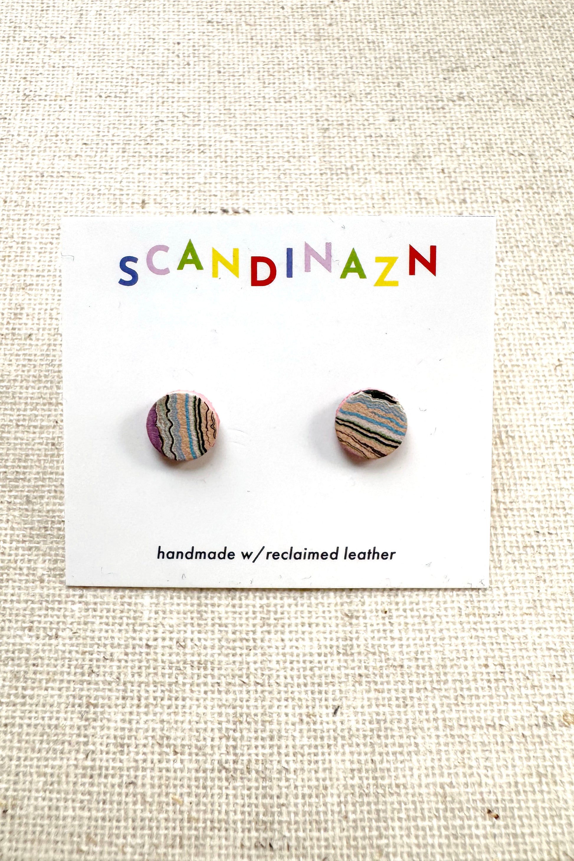 Hand marbled Leather mini studs, surgical stainless steel posts.