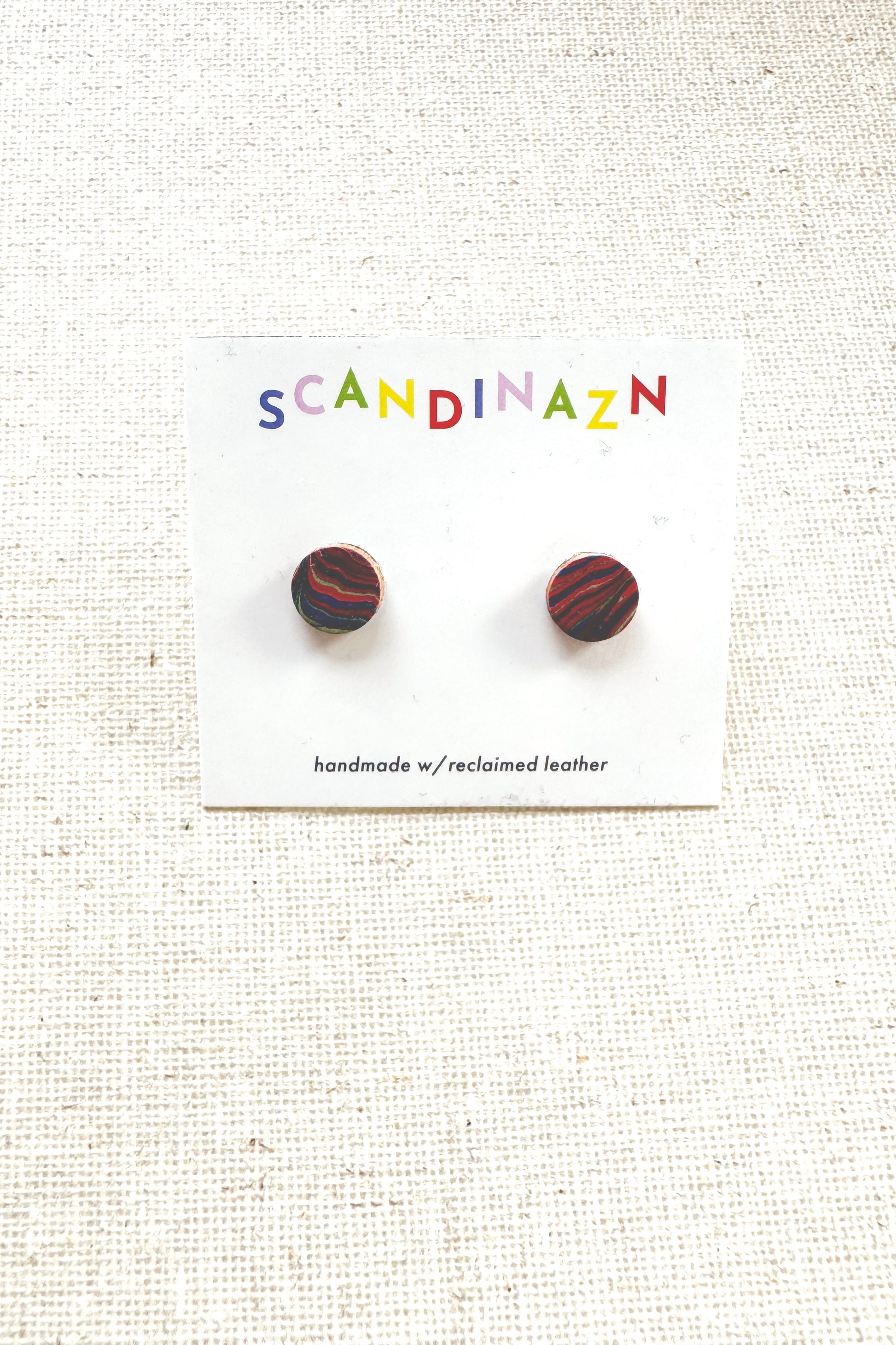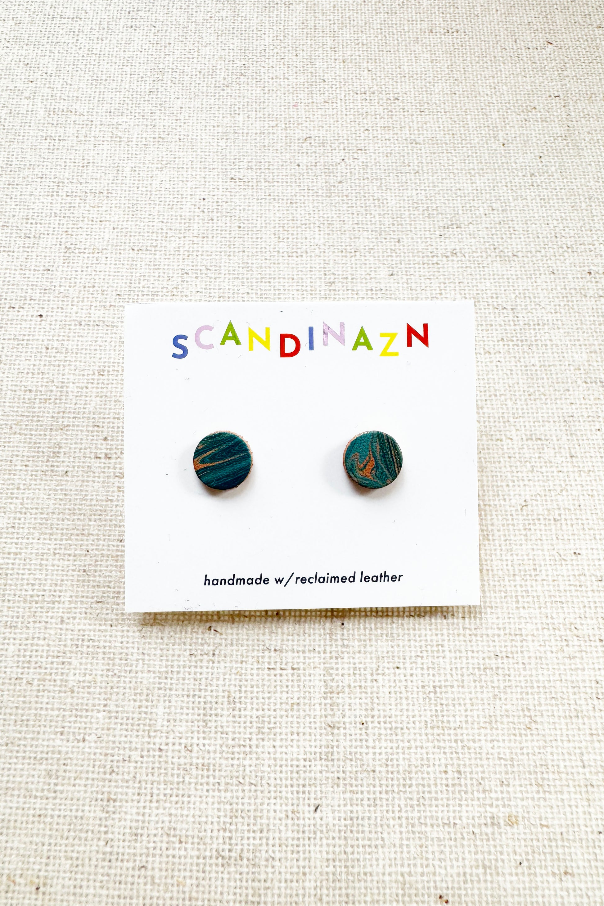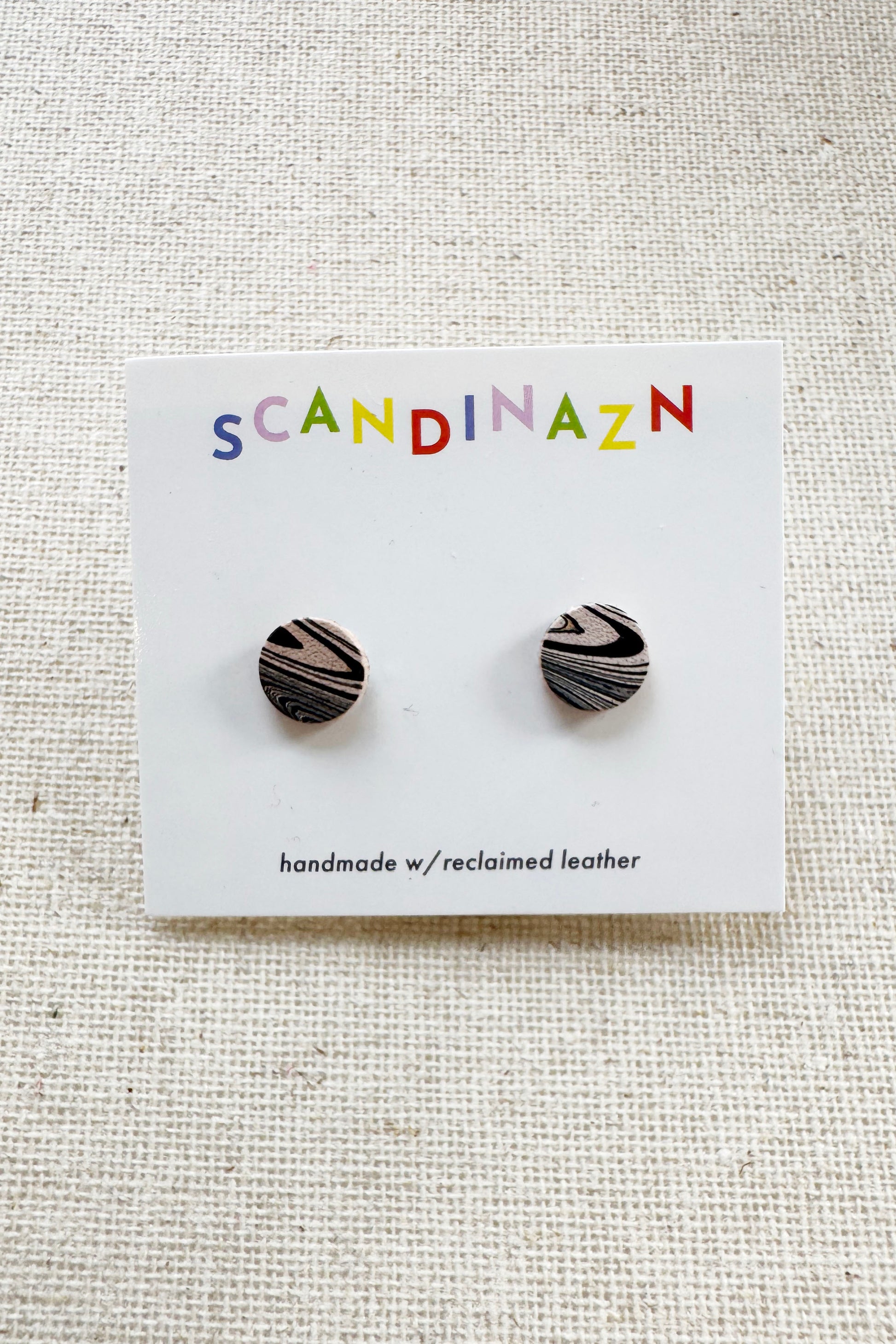Hand marbled Leather mini studs, surgical stainless steel posts.