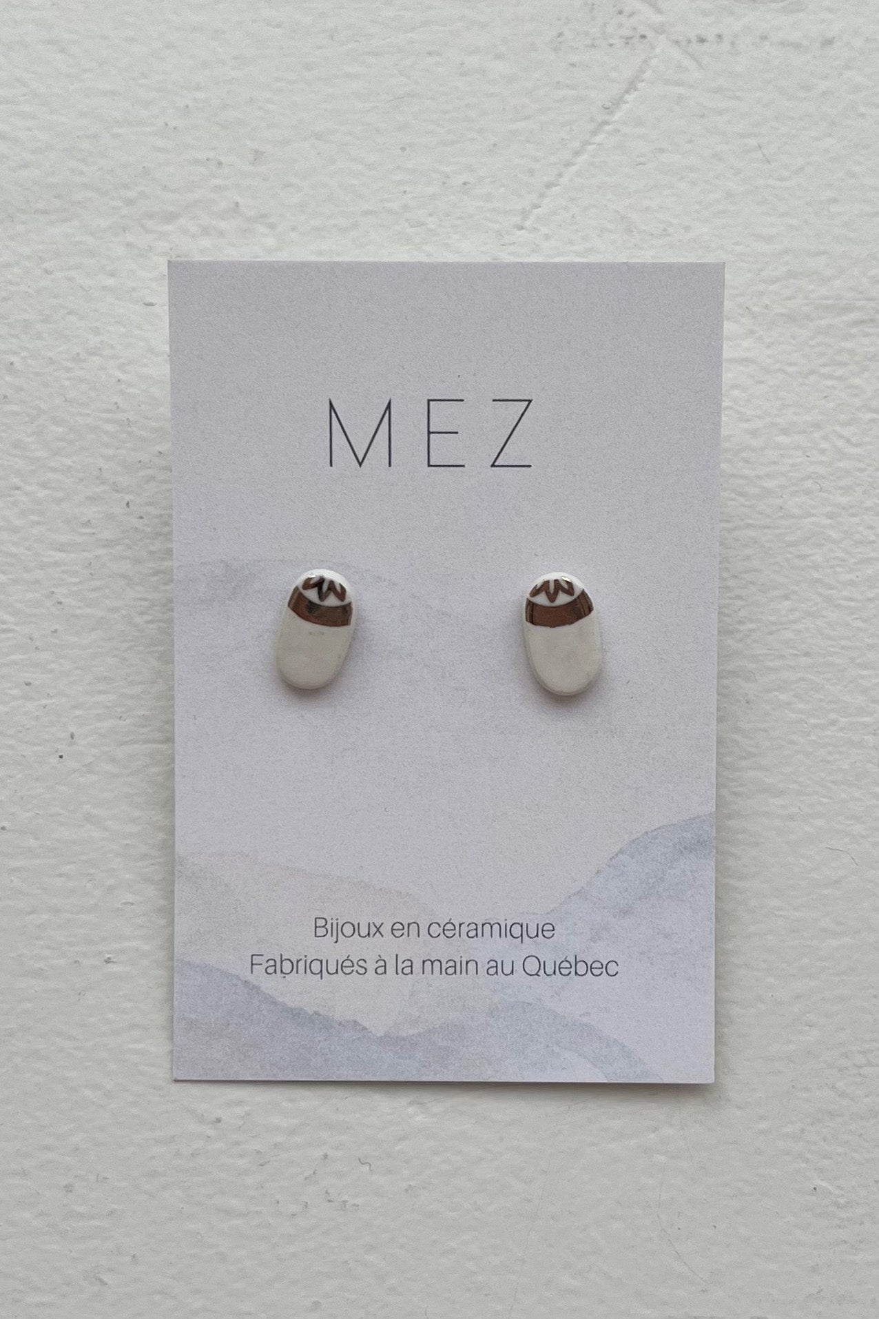 The stems are made of stainless steel, so hypoallergenic, as on all MEZ jewelry. The ceramics are painted with quality glazes and heated to high temperature in a "kiln" type oven. The ceramic is very light and has a distinguished and natural look. Each piece is unique and handcrafted in Vaudreuil-Dorion (Quebec, Canada).