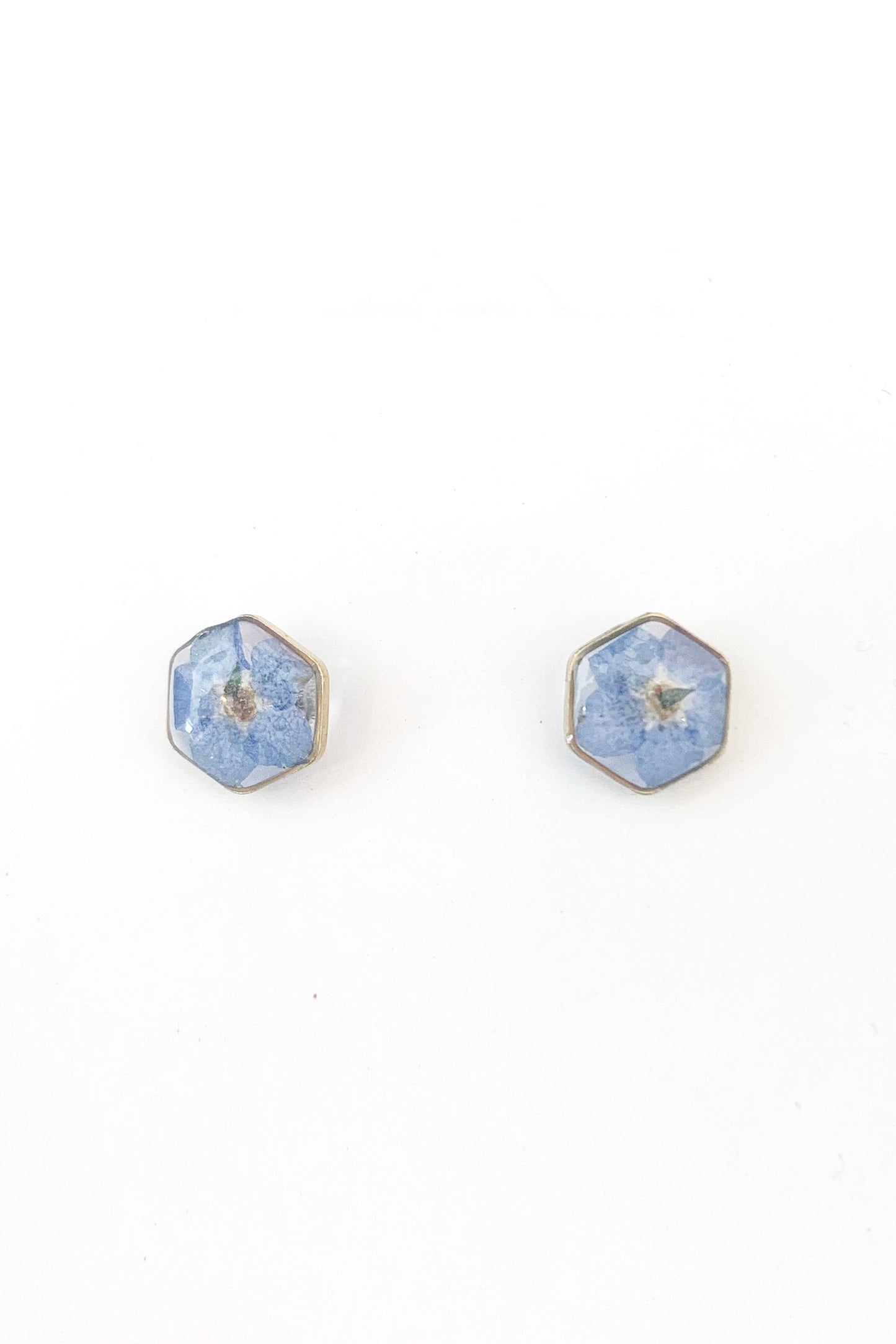 Real pressed flowers and leaves preserved in clear durable resin. Backings are hypoallergenic stainless steel.