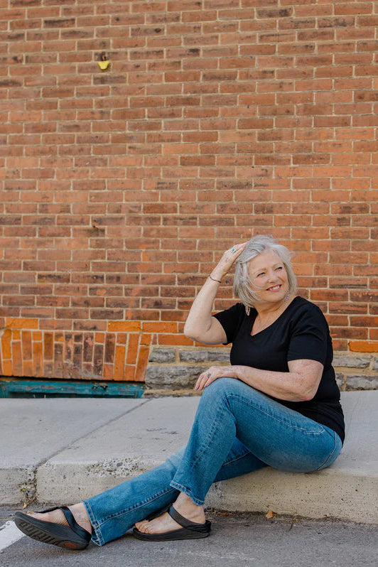 If you're looking for a t-shirt with a bit of a dressier feel, look no further than the Rideau Shoreline Tee from Blondie. This soft and stretchy bamboo/cotton tee features a scoop neck, a natural fit, and is a little longer in the arms and body than some of the designer's other tees. It comes in White and Black in sizes XS to XL.